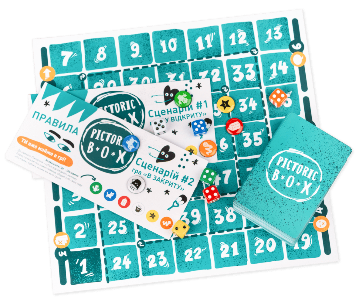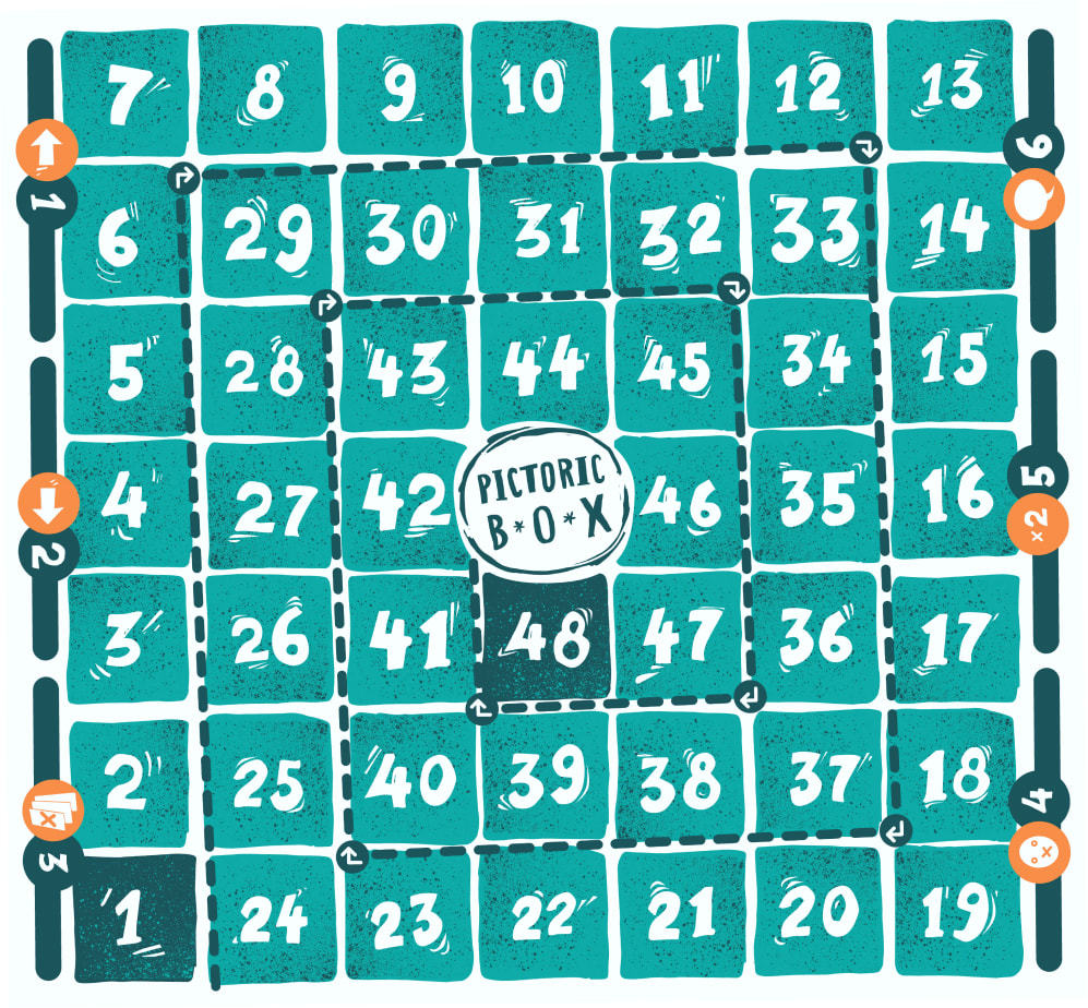 Players move their "pictorics" across the field by the number of cells corresponding to the number of points received per game round.